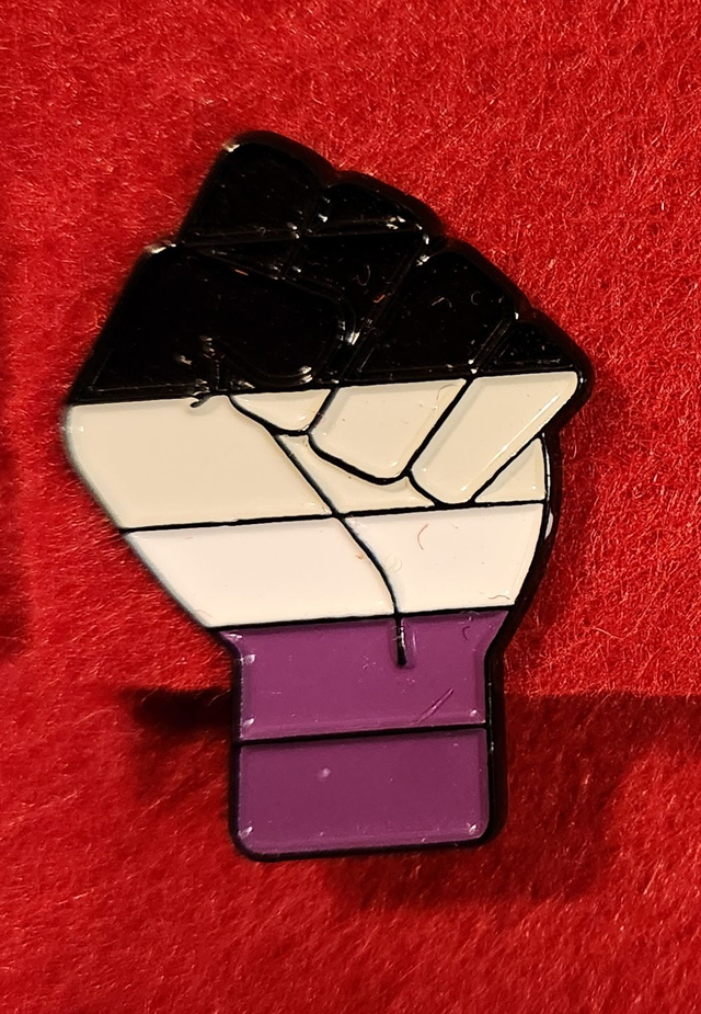 The fist of solidarity in the asexual pride colours